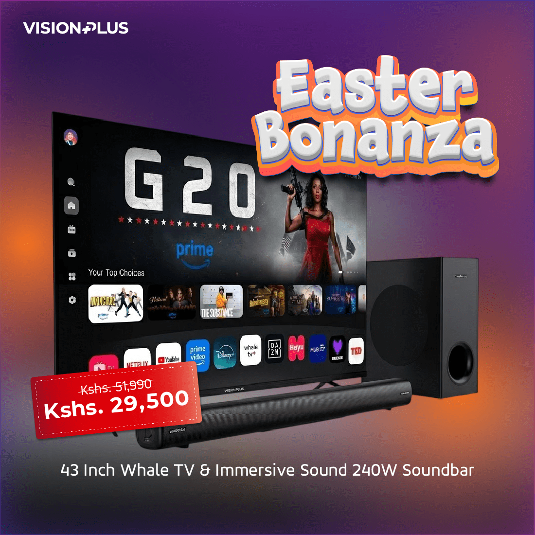 Easter Bonanza Bundle! Get the Vision Plus 43 Inch Whale TV paired with the Immersive Sound 240W Soundbar at an unbeatable price. Enjoy smart TV features with Whale TV platform, plus cinema-quality sound.