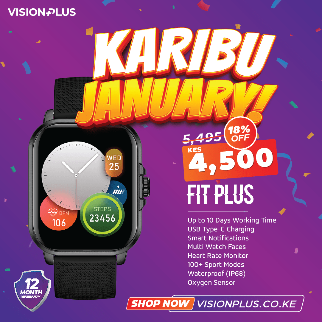 Maximize your fitness with Vision Plus Fit Plus Smartwatch. Enjoy up to 10 days of power, waterproof design (IP68), and essential health features. With 100+ sport modes, customizable watch faces, and smart notifications via Bluetooth, Fit Plus is the ultimate blend of style and functionality.