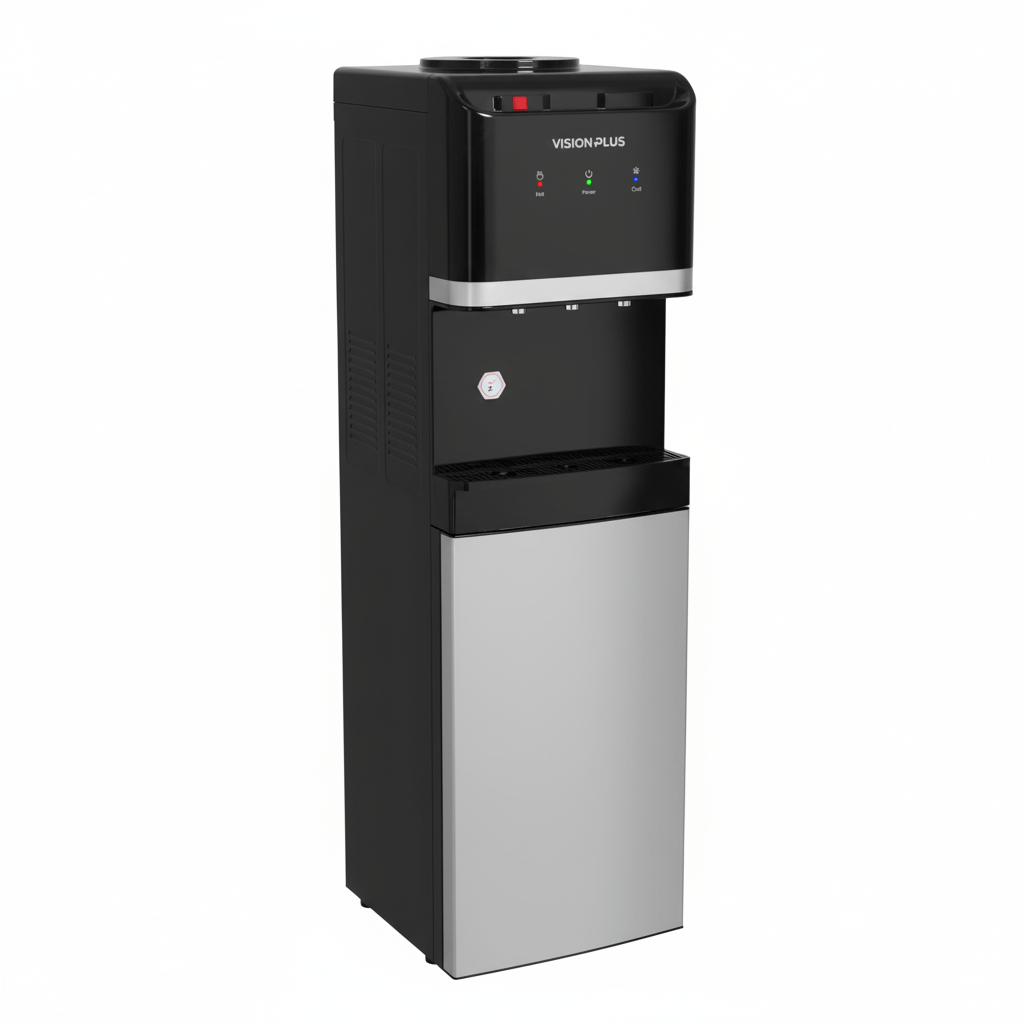 Experience convenience with our Water Dispenser featuring hot, normal, and cold taps for instant access to your preferred water temperature. The advanced compressor cooling system ensures a constant supply of refreshingly chilled water, even during peak usage. Designed with safety in mind, this dispenser includes a child lock to prevent accidental burns, making it ideal for homes with young children. The convenient under-storage cabinet provides extra space for keeping cups, mugs, or other essentials within easy reach.