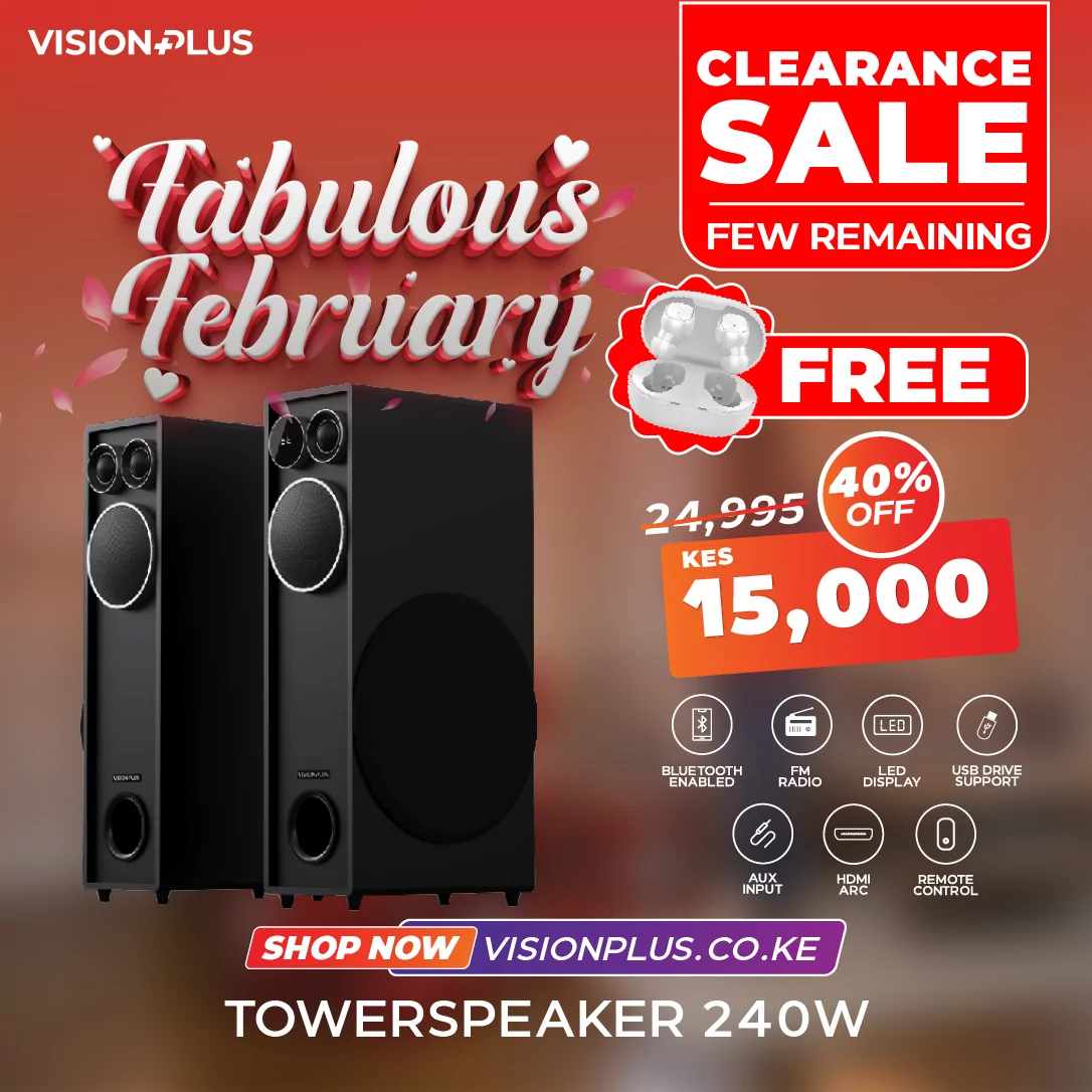Experience premium audio with the Vision Plus Tower Speaker 240W, a handcrafted wooden sound system delivering powerful 240W output through dual subwoofers, midrange drivers, and tweeters, with versatile connectivity options including Bluetooth, USB, AUX, and HDMI for an immersive entertainment experience.
