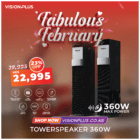 Experience premium audio with the Vision Plus Tower Speaker 360, a handcrafted wooden sound system delivering powerful 360W output through dual subwoofers, midrange drivers, and tweeters, with versatile connectivity options including Bluetooth, USB, AUX, and HDMI for an immersive entertainment experience.