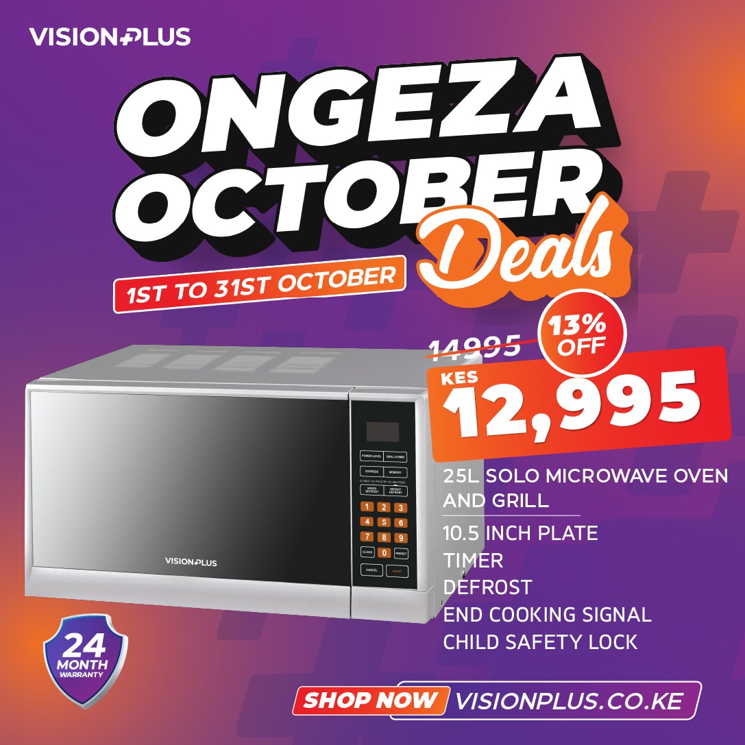 Effortlessly cook, grill, and reheat with the Vision Plus 25L Microwave. This 900W digital oven features 6 auto-cook programs, 10 power levels, and a child safety lock for peace of mind. Perfect for any modern kitchen.