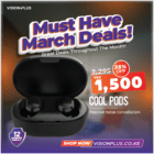 Vision Plus Cool Pods redefine convenience in wireless audio. Elevate your experience with Micro USB compatibility, Bluetooth , and water resistance. The in-built microphone, coupled with a reliable 200mAh battery, ensures a seamless and reliable listening journey, all backed by our solid 1-year warranty commitment.