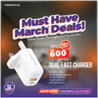 Vision Plus Dual Fast Charger With USB C Cable
