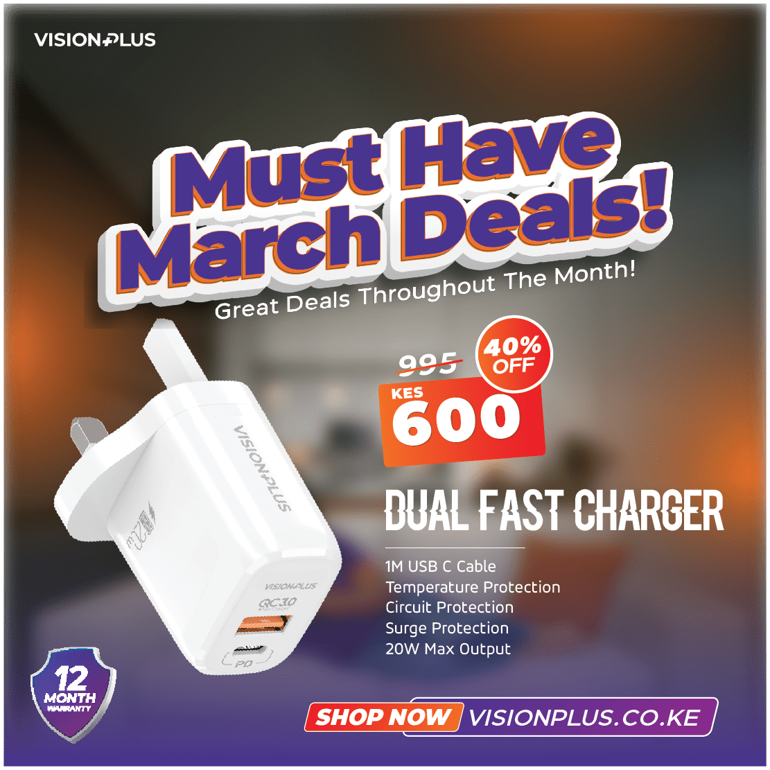Meet the Vision Plus Dual Fast Charger – your reliable ally for swift and secure charging. Wrapped in protective layers, equipped with an included 1 Meter USB C cable, and boasting 20W high power with Qualcomm 3.0, it’s your key to efficient charging. Say goodbye to waiting and hello to hassle-free power-ups!