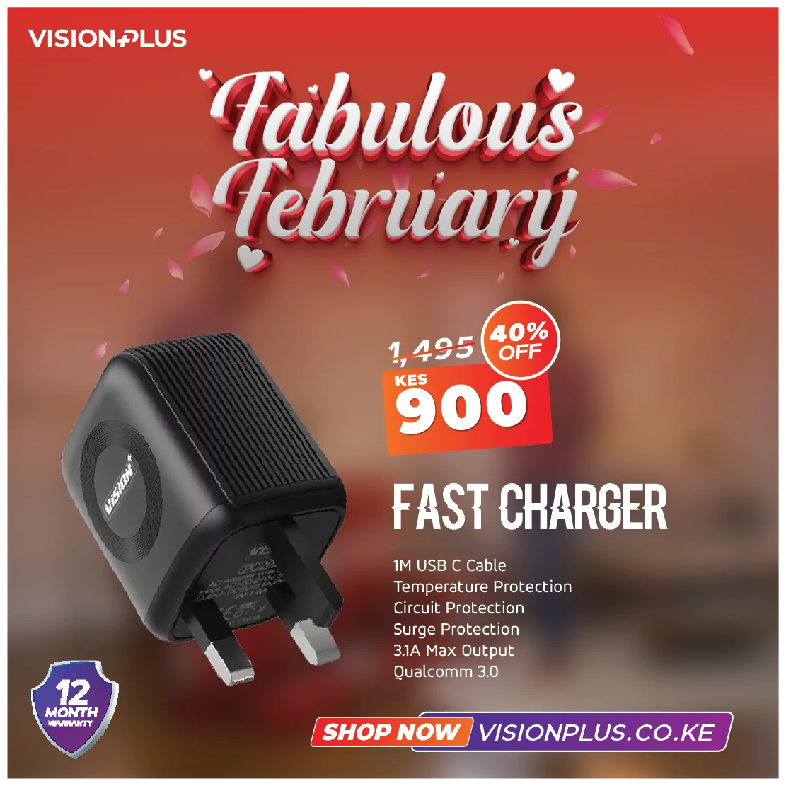 Vision Plus Fast Charger With USB C Cable