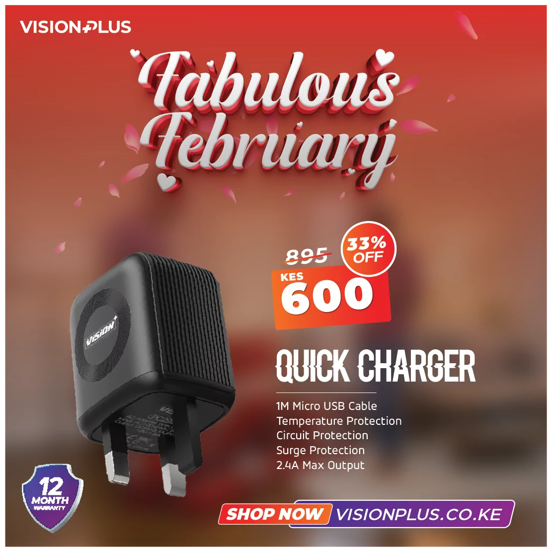 Achieve superior device performance with the Vision Plus Power Adapter. Crafted with circuit, surge, and temperature protection, it guarantees unmatched reliability. Boasting dual USB ports and a 1-meter Micro USB cable, enjoy seamless charging experience with a powerful 2.4A output max. Smart and reliable charging at your fingertips.