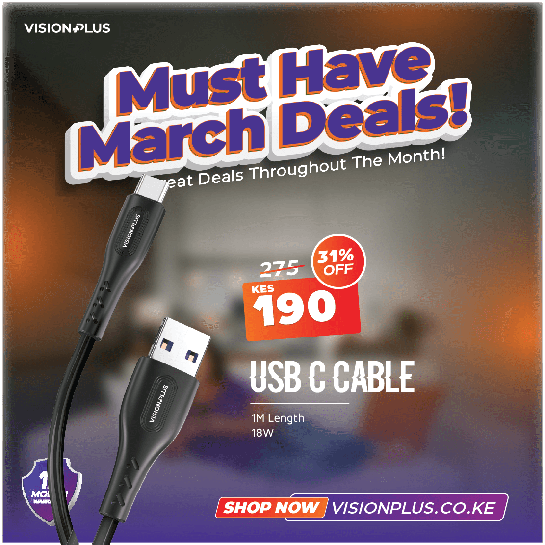 Step into the future of connectivity with our advanced Vision Plus USB Type C cable. Comes with a handy 1-meter length for your convenience. Boasting a powerful 18W and a maximum 3.0A output, our cable ensures speedy and efficient charging for all your devices. Charge up with ease!